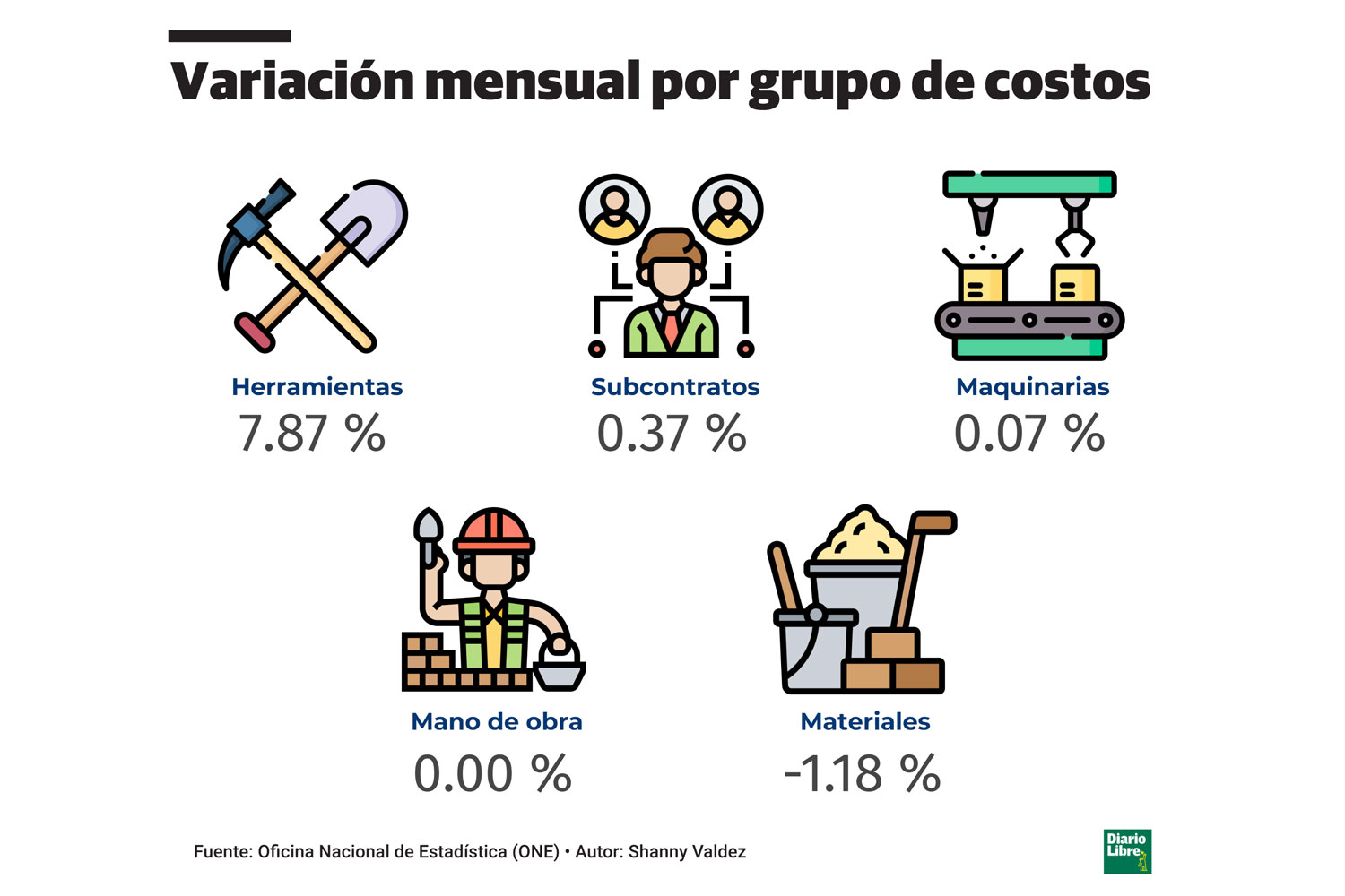 Por subgrupos de costos, las principales alzas mensuales se concentraron en herramientas (7.87 %), agregados (4.93 %), bloques y otros (2.49 %), subcontrato de terminaciones (1.91 %) y misceláneos eléctricos (1.58 %).