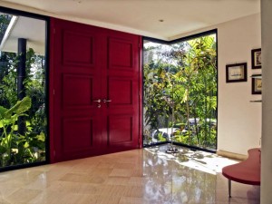 Detalles de color, como esta puerta roja, acentúan aún más lo tropical en la residencia. julio 18, 2012 9:22 pm . . Compartir :